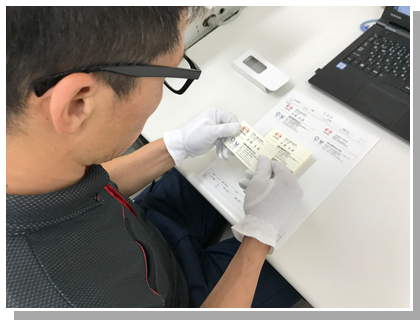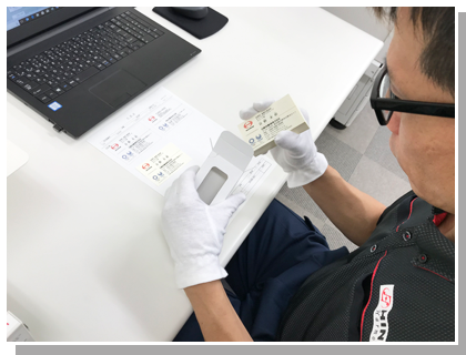 日野自動車およびラグビー部など関連団体の名刺を作成しています。お客様からいただいた発注データをもとに、パソコンを使用してレイアウト~印刷~裁断~箱詰めを行います。他に、各種イベント用の名札なども作成しています。