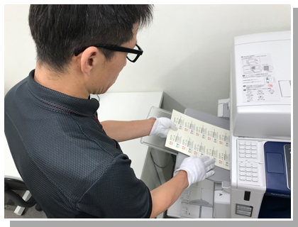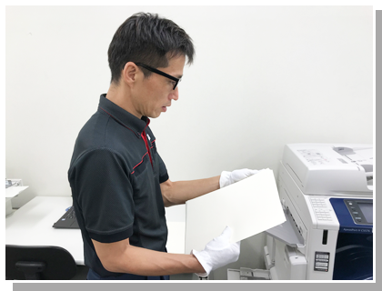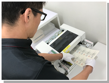 名刺用紙の枚数を数えて、印刷機にセットします。