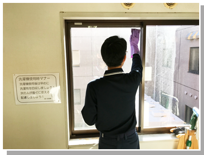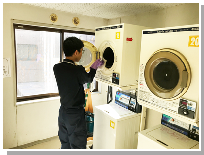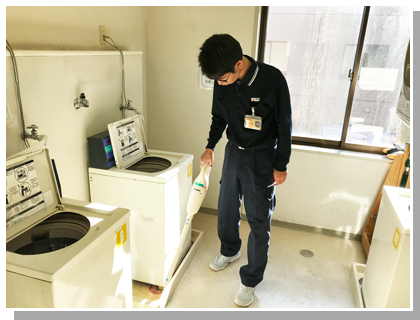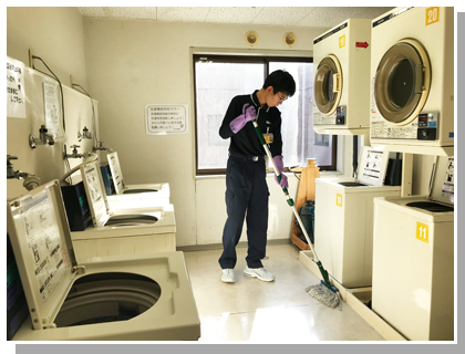 社員寮(洗濯室)の掃除しごと担当スタッフ